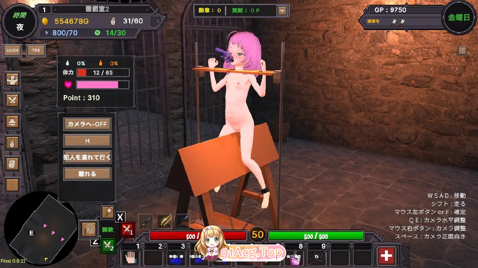 游戏的展开以“逮捕”为轴心。玩家可以对所有女性角色使用“审问”或“神之眼”等手段进行逮捕。根据告示板上的通缉令逮捕通缉犯,就能获得更多的报酬。用得到的报酬可以强化能力、扩张监狱、解锁处决方法等。即使不推进主线故事,也可以享受丰富的游戏内容。